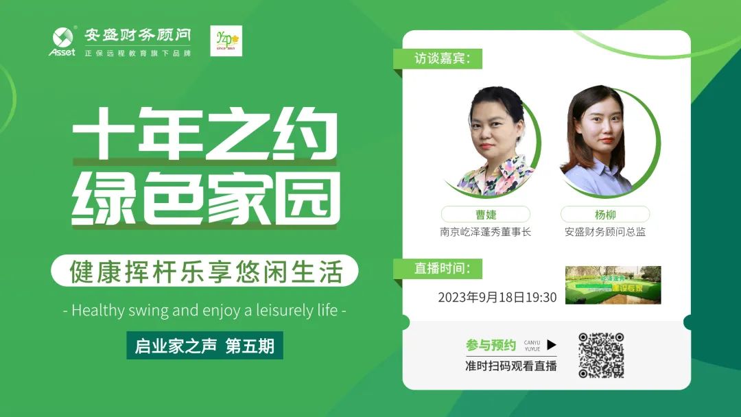 為進(jìn)一步探究這個(gè)話題,9月18日19:30,正保安盛財(cái)務(wù)推出《啟業(yè)家之聲》第五期:《【十年之約 綠色家園】健康揮桿樂享悠閑生活》主題訪談直播,帶大家了解庭院高爾夫的全貌,因它的強(qiáng)靈活性、小占地面積、易養(yǎng)護(hù)打理、四季通用等優(yōu)勢(shì),而受到大眾的喜歡。